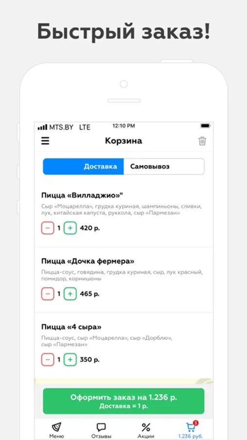 — Быстрый заказ с мгновенным подтверждением через приложение.