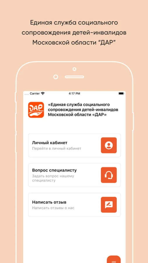Мобильное приложение ч«Портал «ДАР» создано для оказания информационно-аналитического сопровождения семей, воспитывающих детей-инвалидов Московской области в возрасте от рождения до 21 года.