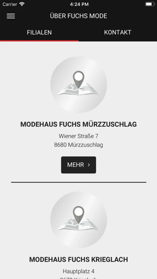 Über uns: Welche Filiale hat wann geöffnet? In der App steht alles drin. Ein Blick auf die Map verrät Ihnen außerdem, wie Sie am besten zu uns fahren.
