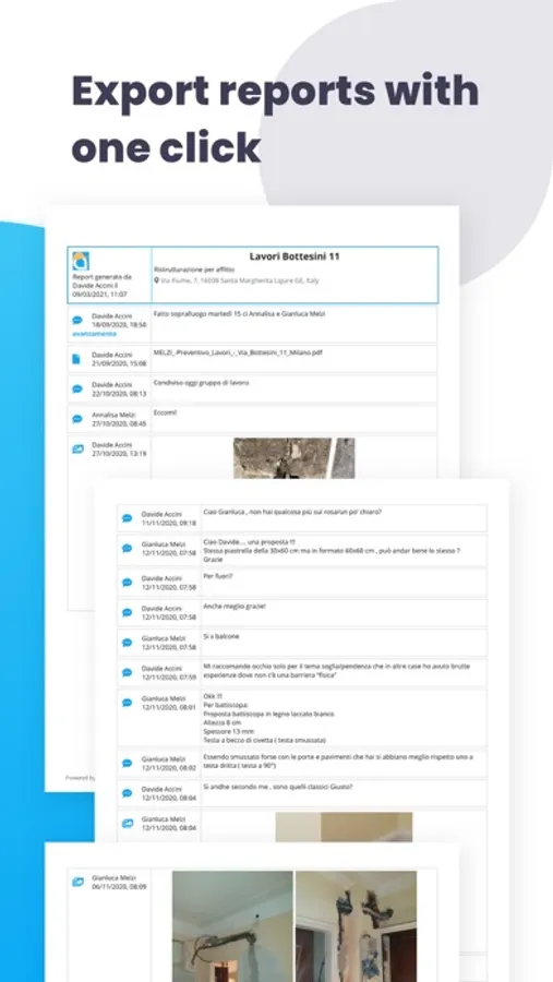 Mela makes you manage your work site from your smartphone, with the ease of a messaging app. You can quickly add photos, log materials expenses, and export your work logbook with one click.