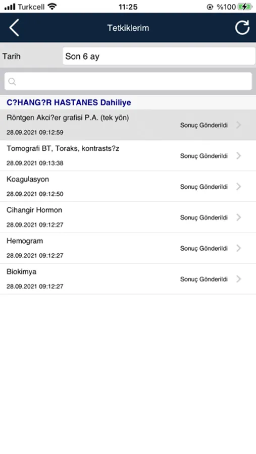 • Tüm "Laboratuvar ve Radyoloji" tetkik sonuçlarınızı görebilirsiniz.