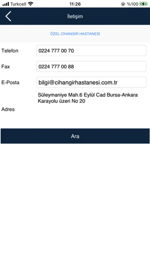 • Hastaneye direkt olarak yol tarifi alabilirsiniz.