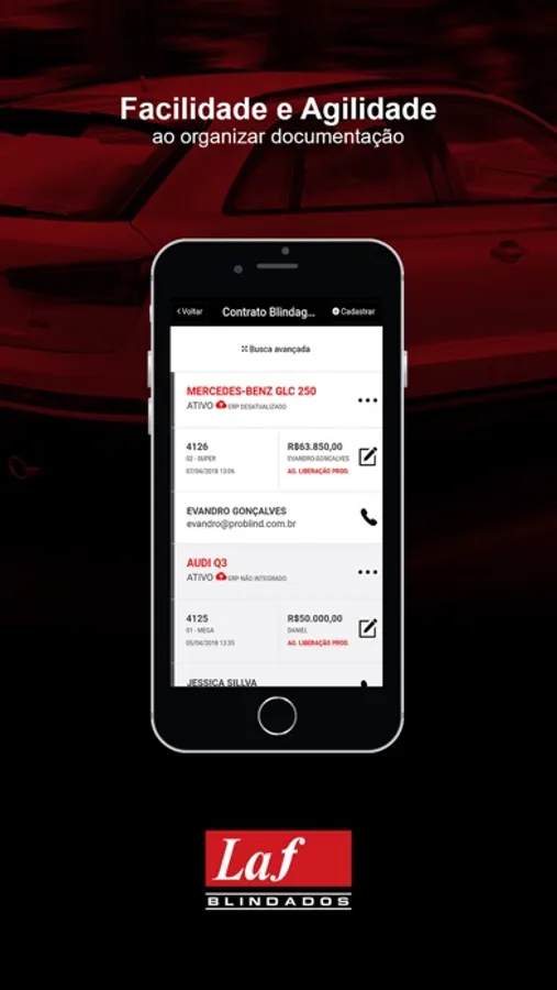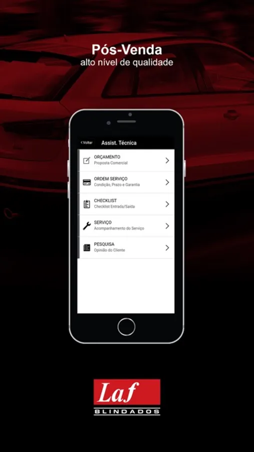 Todos os clientes da LAF podem utilizar o aplicativo e acompanhar o andamento da blindagem do seu veículo, assim como acessar dados da venda/contratação.