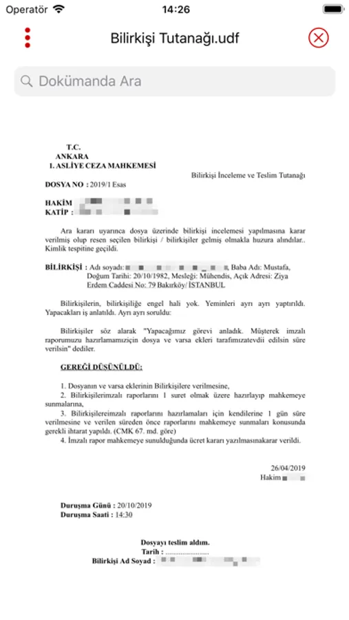 • Görüntülenen UDF dokümanında içerik araması yapılabilmesi
