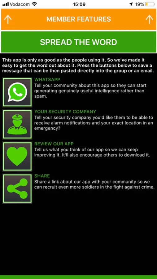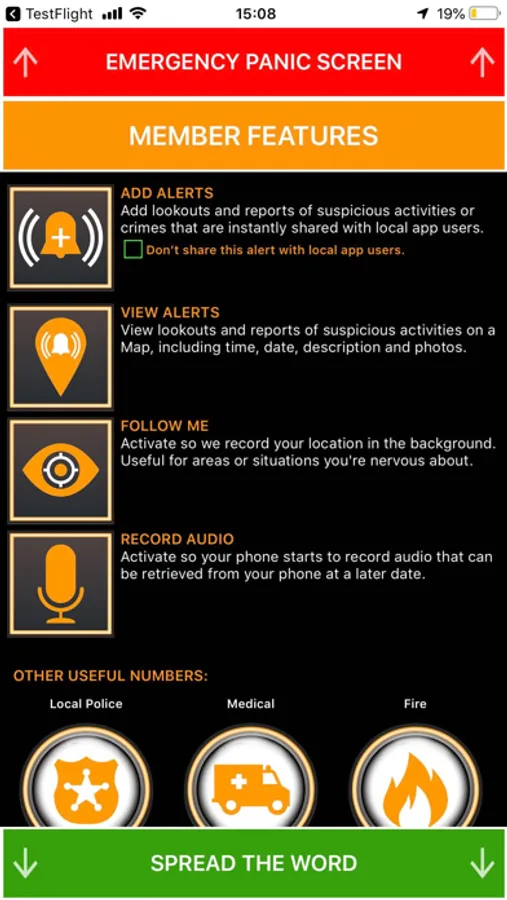 - local app users will also receive an alert showing your location, photo and name (opt in feature).