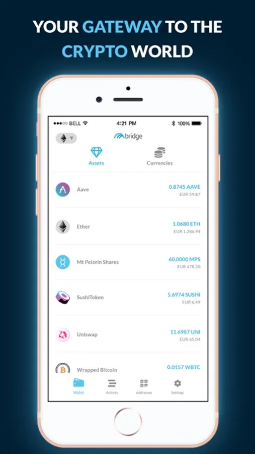 Bridge Wallet is an app made by Mt Pelerin, a regulated Swiss company established since 2018.
