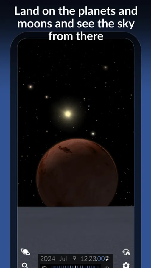 • Choose your exact landing site on a planet or moon, and watch the sky from there