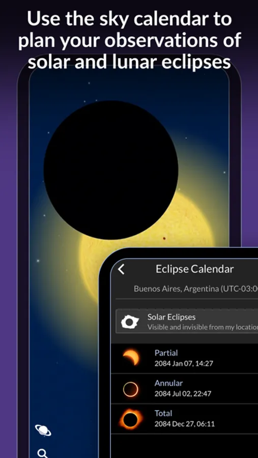 • Use the sky calendar to plan your observations of solar and lunar eclipses