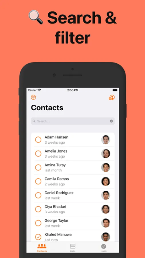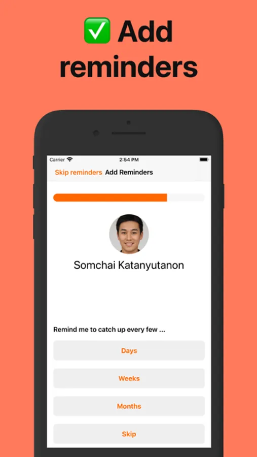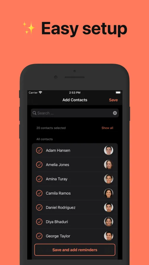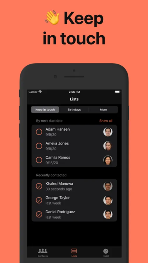 You decide which people matter. After time reminders show up. Then it's your turn. Meet, call, or be creative.