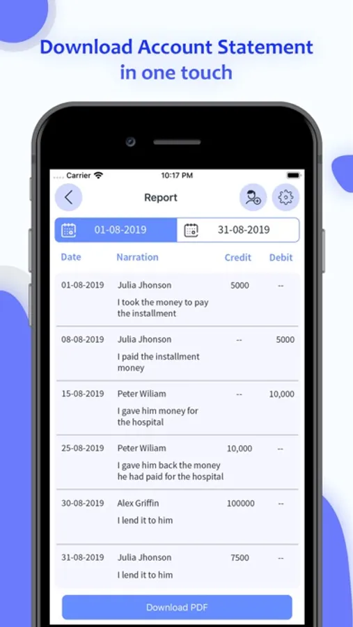 - Download your user account statement(Report) PDF in one touch