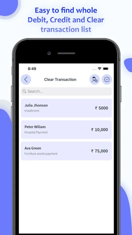 Transactions occurring in your daily business, and Credit(Jama) & Debit(Udhar) from your everyday customer using the simple digital ledger book.