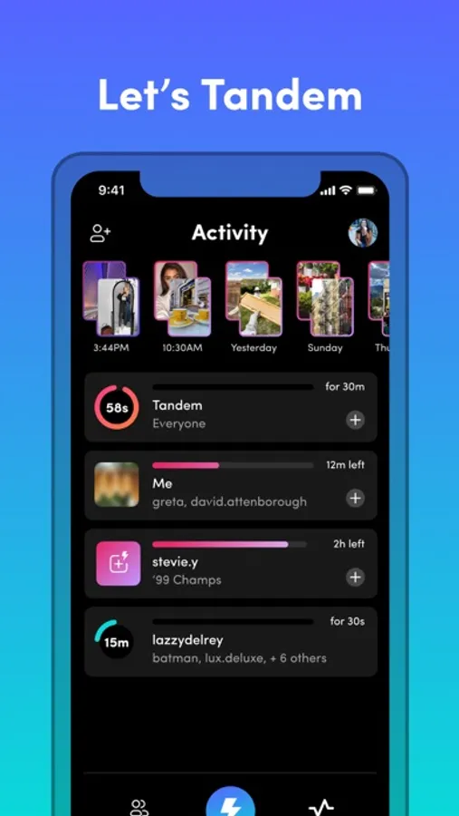 Whether in the same room or across the world, capture and share the same moment in time with simultaneous photos. See what your friends are doing & show off what you're doing effortlessly and instantly. Let's Tandem!