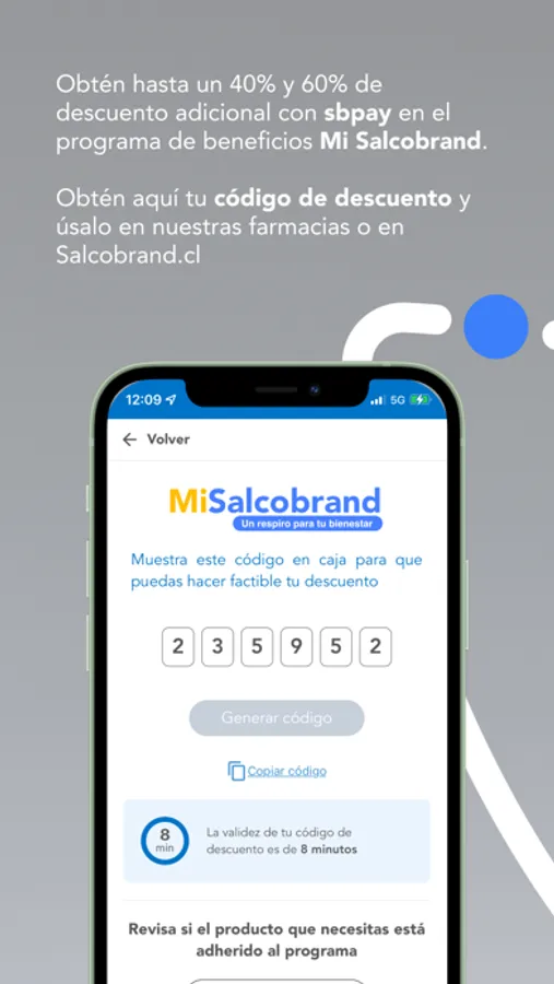 • Obtener tu código de descuento en Mi Salcobrand para compras en farmacias Salcobrand y en Salcobrand.cl.