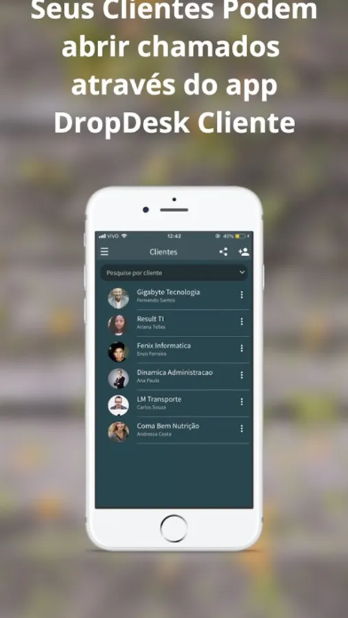 - Cadastre cliente na sua empresa para que possam abrir chamados diretamente do app DropDesk Cliente.
