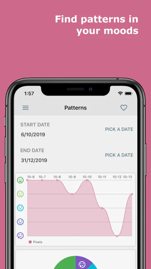 Get insights and statistics of your mental health with its “Patterns” feature: examine your data with graphs and other analytics tools!