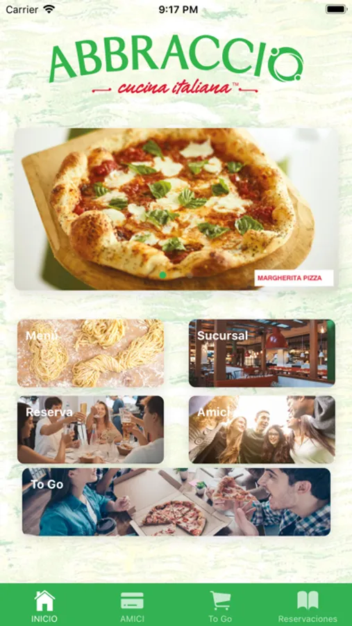 Conoce nuestra menú, haz tus pedidos en línea, reserva, accede a tu cuenta Amici