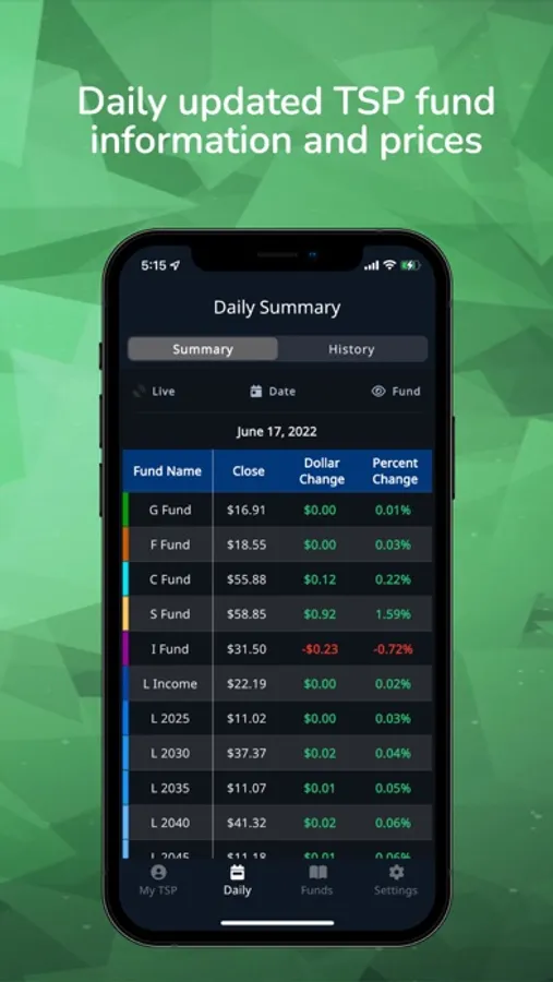 The Daily TSP app is not affiliated with the United States Government, The Federal Retirement Thrift Investment Board or the Thrift Savings Plan, and that the service being offered is not sanctioned by the United States Government, the Federal Retirement Thrift Investment Board or the Thrift Savings Plan.