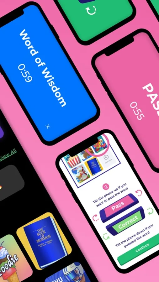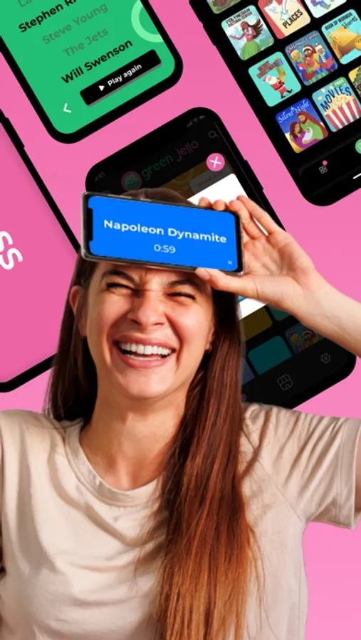 Play on your phone by guessing the word on the Card that you’re holding up to your forehead using your friends’ clues before the timer runs out! Dancing, singing, act-outs are all allowed…just no rhyming!