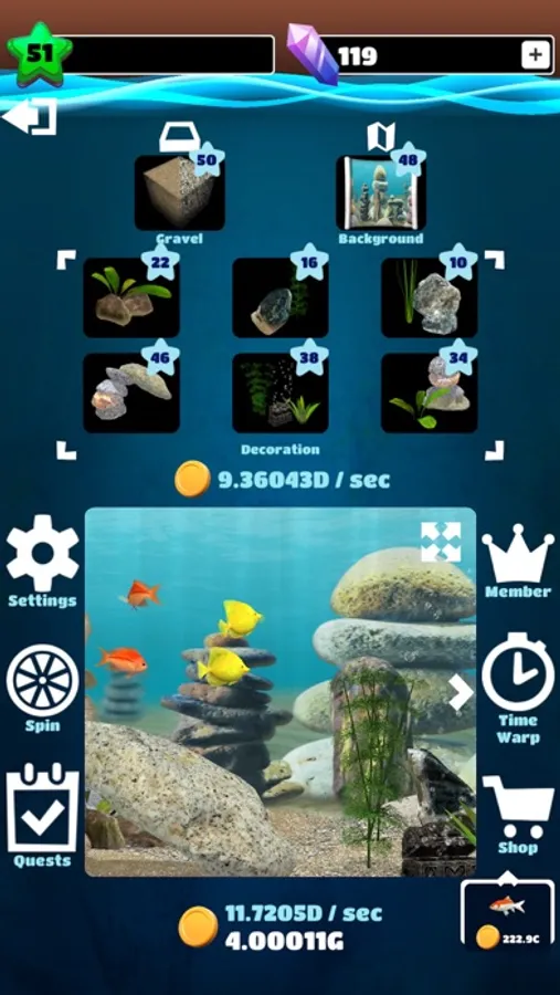 * Lean back, and enjoy your aquariums in Fullscreen, while they earn coins for you