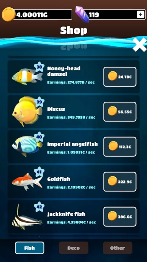 * Buy more Fishes, Merge more Fishes, and produce more Coins!