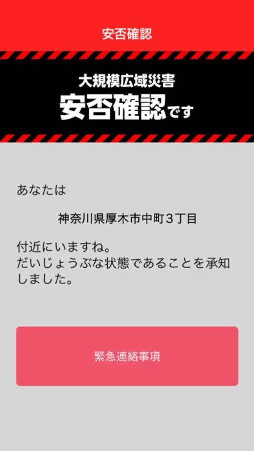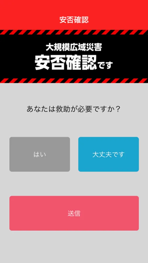 災害が起こった時の安否確認に回答するのは簡単。ボタンを押すだけです。必要なものなどの詳しい情報を組織に伝えることもできます。