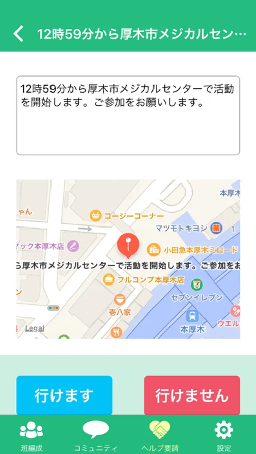 ・あなたの所属組織は、あなたが安全であれば、集合時間と場所等を指定することができます。あなたは行くことができるかどうかを回答してください。