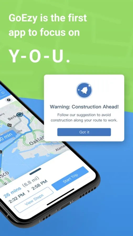 GoEzy learns your trip schedule and creates personalized transportation recommendations for your upcoming trips that can save you time, money, or avoid traffic. If there’s construction on your way to work today, we’ll let you know in advance through real-time traffic alerts so you won’t be late. If another transportation option like taking the bus or subway could help you avoid a major traffic jam, we’ll tell you how much it will cost, map out your route, and provide GPS navigation to the station at the right time.