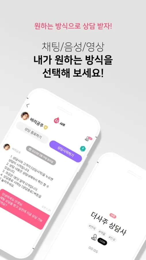실시간으로 진행되는 채팅, 음성, 영상상담뿐만 아니라