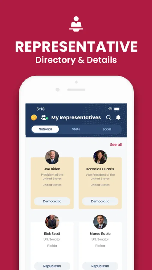 - Learn about your elected representatives and connect with them