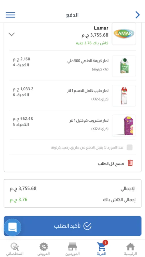 Cash back: After your order has been delivered Cartona gives a cash back amount on every order depending on the value of your order. So ordering through Cartona you will always make money! You will get your cash back every month which you can use however you would like.