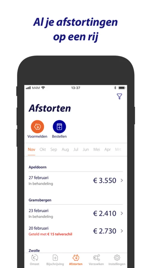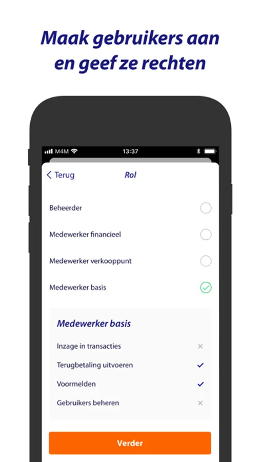 - Eenvoudig medewerkers autoriseren voor voormelden afstortingen, betaalverzoeken en refunds