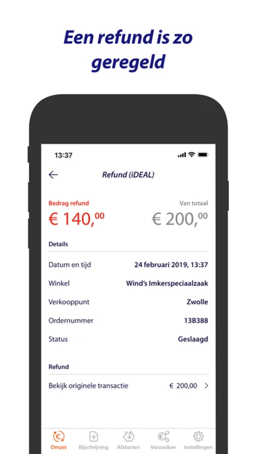 Ook Refunds regel je snel en makkelijk; je zoekt in de App op de transactie en met één klik regel je de terugbetaling.