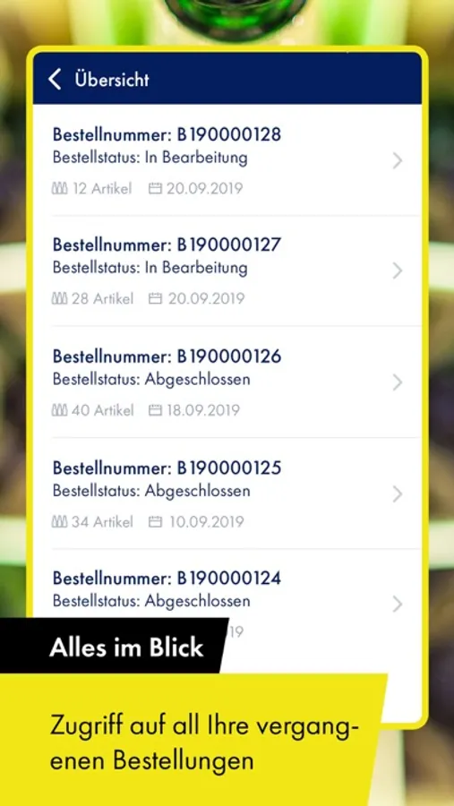 ALLES IM BLICK – in Ihrem persönlichen Bereich der App können Sie Ihre vergangenen Bestellungen einsehen und kontrollieren. Sie können sie auch als Vorlage für neue Bestellungen nutzen, um so noch schneller Produkte aus Ihrem Sortiment zu bestellen.