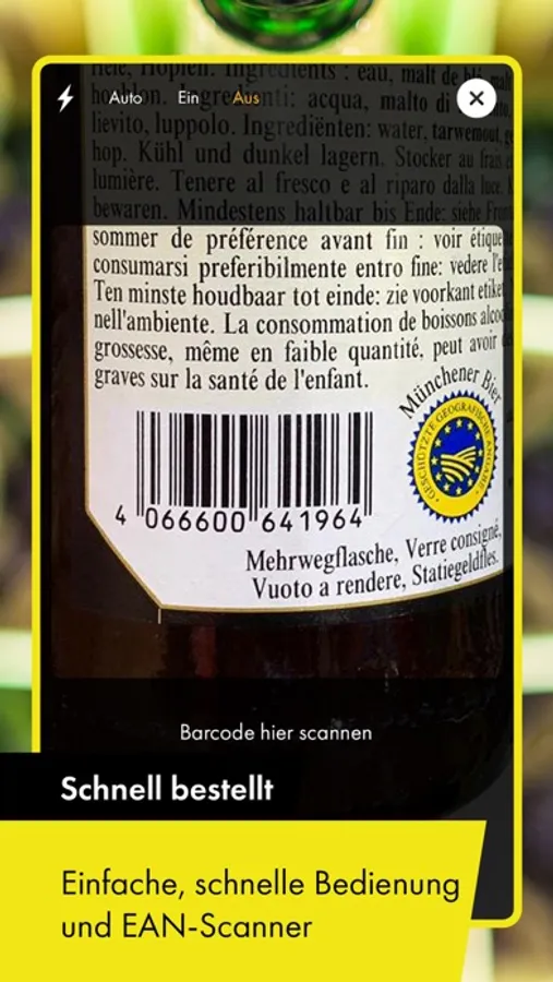 SCHNELL BESTELLT – schnell und unkompliziert können Sie, ohne durch lange Listen scrollen zu müssen, Getränkebestellungen aus Ihrem Stammsortiment aufgeben – auch offline im Keller. Nutzen Sie außerdem den EAN-Scanner, um gesondert nicht gelistete Getränke bei Ihrem Getränkefachhändler anzufragen.