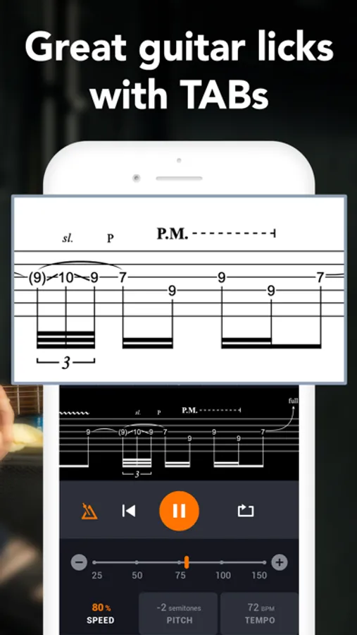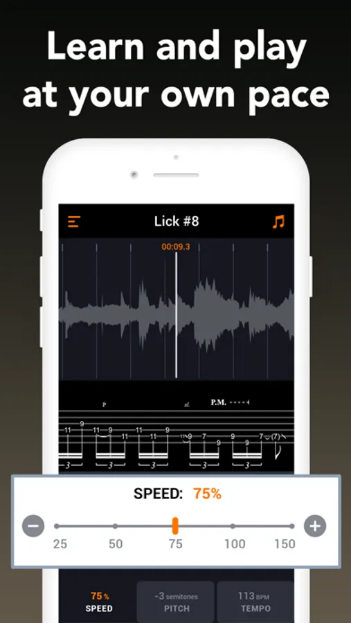 If the Lick Library of the app is not enough for you, you can learn any lick or whole song downloaded from iTunes or stored in your iCloud Drive, Dropbox or Google Drive.