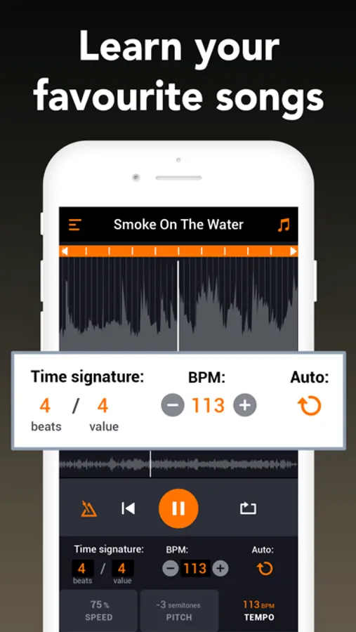 The app can be used simple as a slow downer and pitch shifting app to help you learn any piece of music.