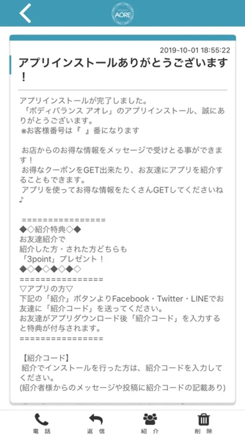 アオレのアプリをSNSを通じてお友達に紹介する事ができます。
