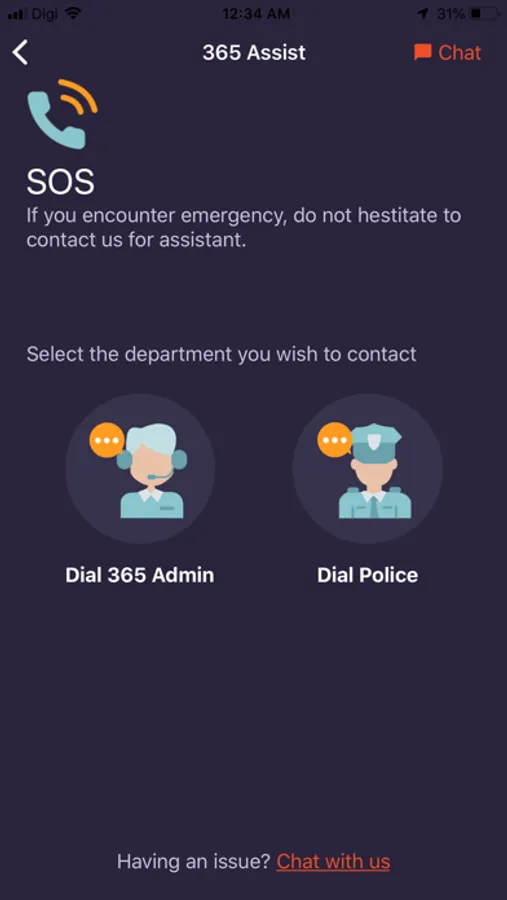 Allows users to submit emergency reports to the Traffic Control Center or 365 admin and can get help in the event of an accident or problem.