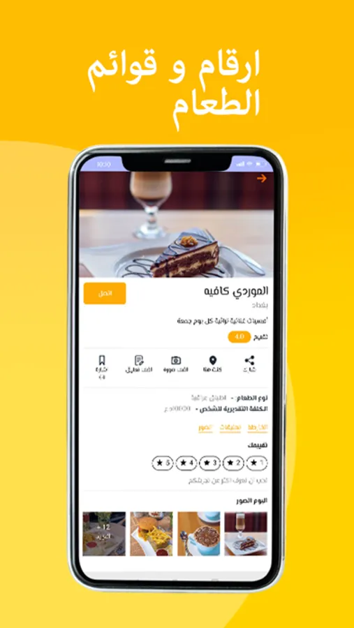 • تستطيع الحصول على كل المعلومات التي تتطلع اليها مثل رقم المطعم، قوائم الطعام وصور للمطعم والاطباق.