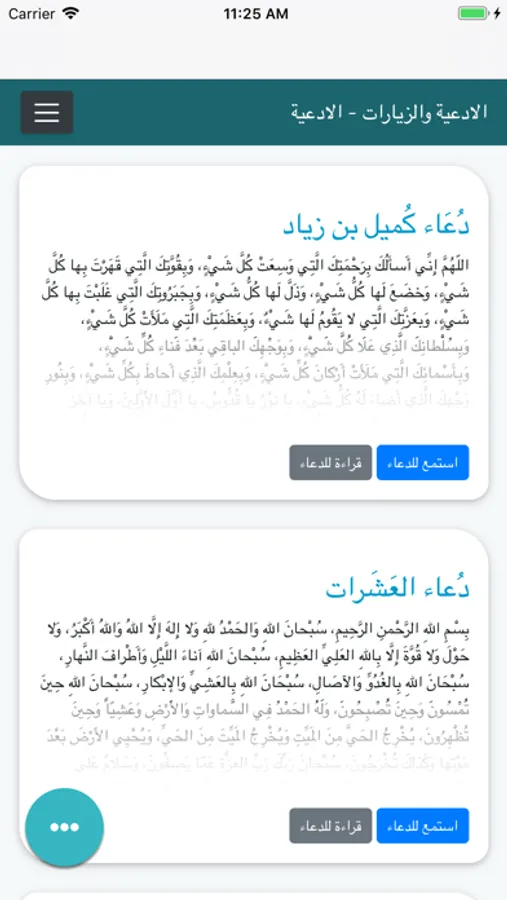 توفر للمستخدم خدمة القراءة او الاستماع للادعية والزيارات التي تخص المناسبات