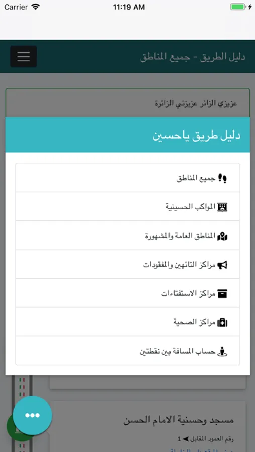 توفر للمستخدم خدمة لإرشاد الزائر لأهم المراكز والخدمات على طريق ياحسين