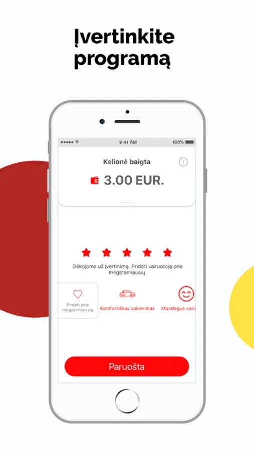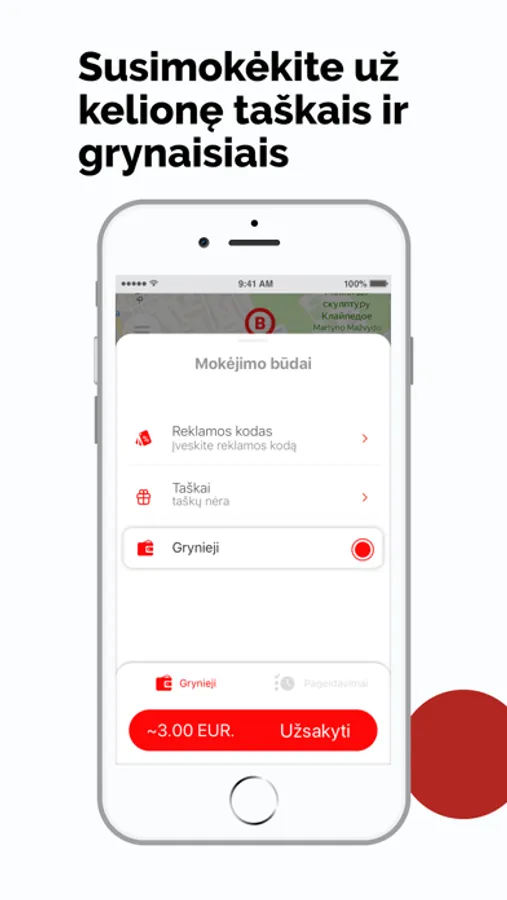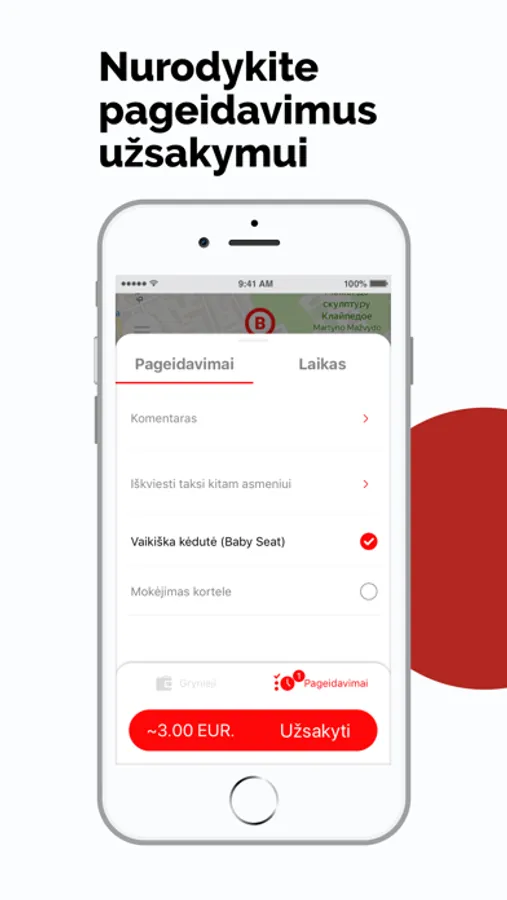 - Greitesnis užsakymas — pasirinkite specialią kainos padidinimo funkciją, kad vairuotojas pasirinktų būtent Jūsų užsakymą.