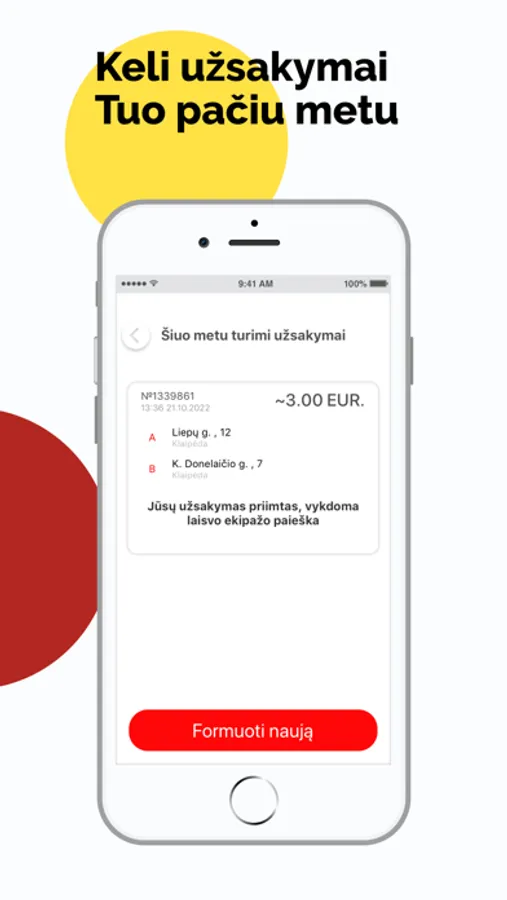 - Vienu metu galima sukurti kelis užsakymus — sukurkite užsakymus net tik sau, bet ir savo draugams. Nurodykite jų numerius ir jie gaus žinutes apie užsakymo būseną. Taip pat iš anksto užsakykite taksi reikiamai datai ir laikui.
