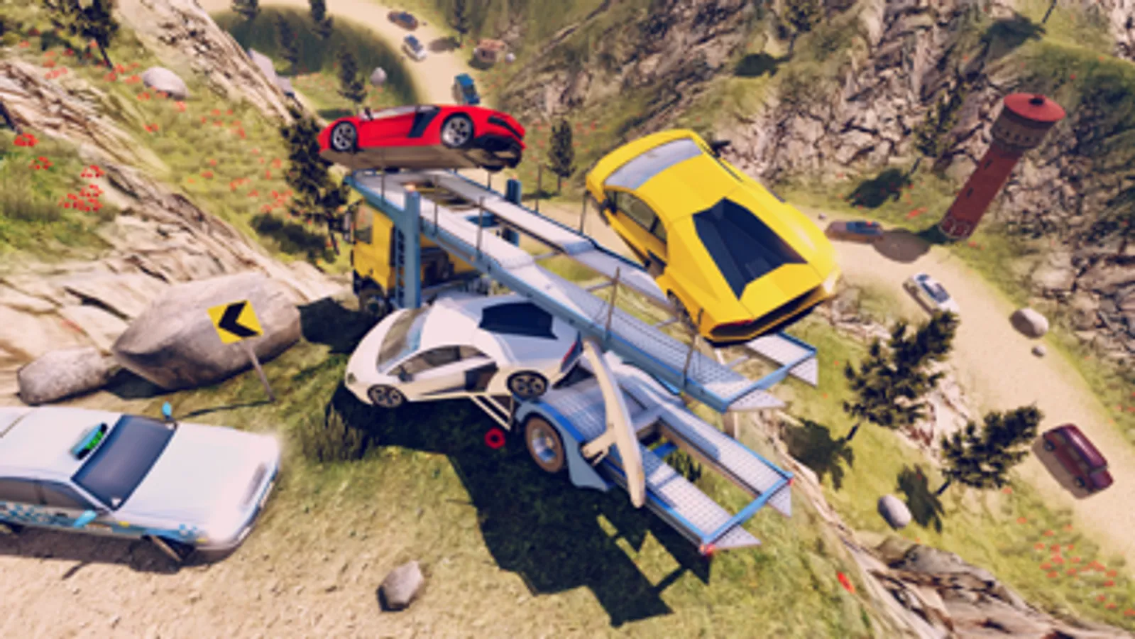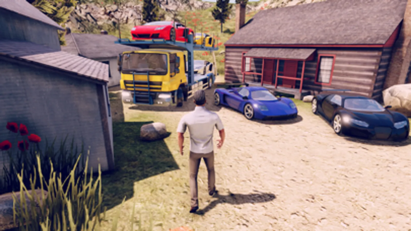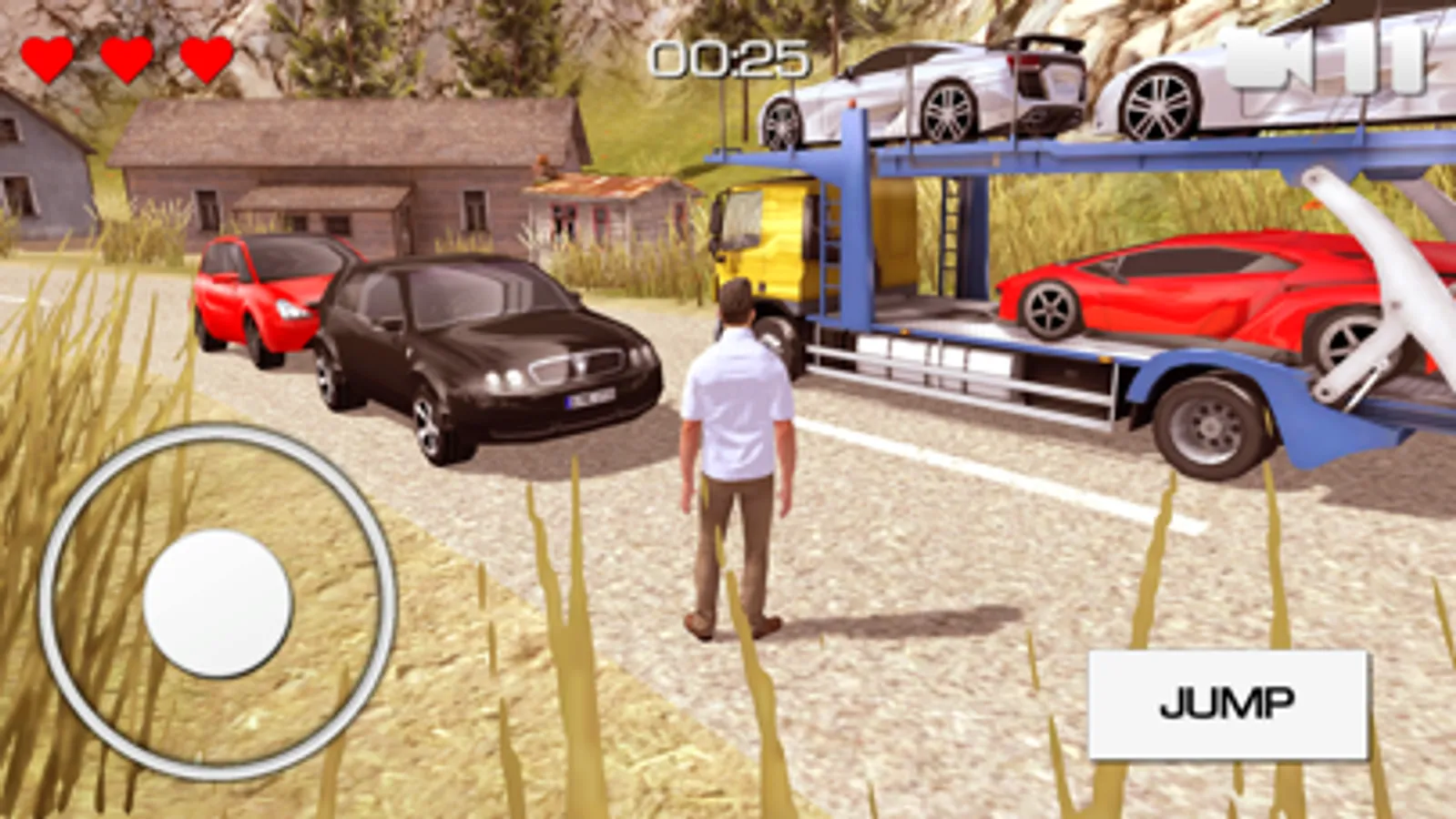 You are a truck driver named John. In this realistic truck car transport simulator game, you can walk freely over the open world, enter in your truck and transport and deliver sports cars to a destination as fast as you can. While you drive a truck you need to avoid traffic and drive carefully because you can crash or damage cargo on these dangerous mountains, hills and death roads. Park your truck at the destination, exit out of it and run to your house. Earn money and buy a license for new cars and cargo and then you will earn even more money by delivering cars. You can also unlock and drive a super sports car, deliver it by driving it to a destination and make stunts with it. Will you be the best truck driver?