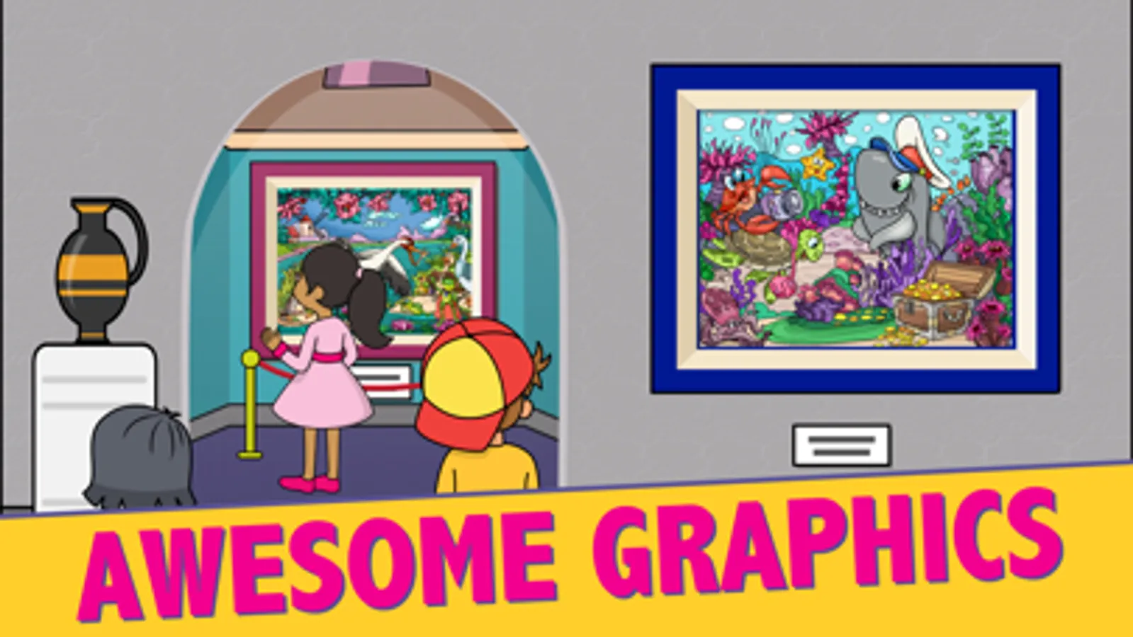 This fun game will entertain your kids for a long time with beautiful handmade search puzzles and simultaneously will improve their concentration, observation and memory skills.