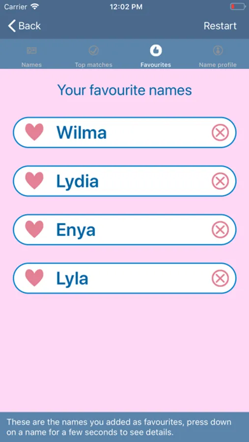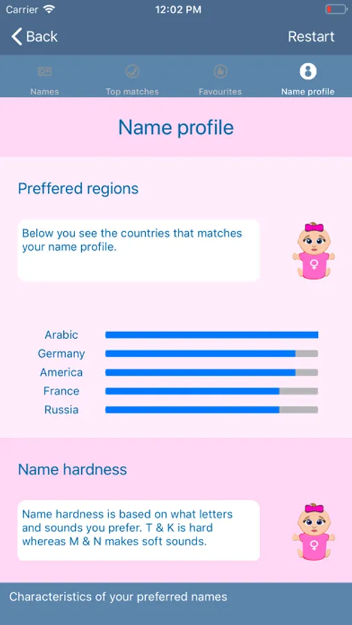 - See your unique baby name profile