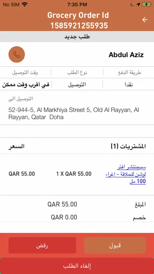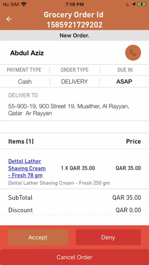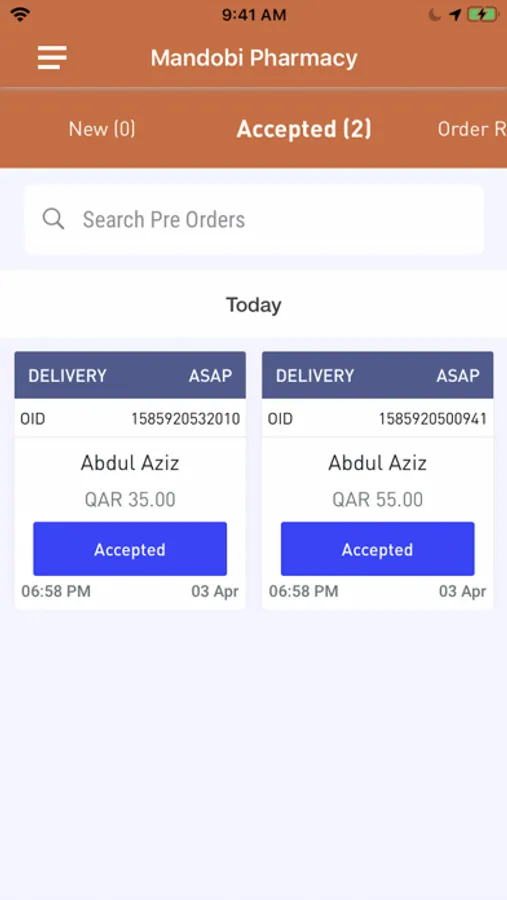 - Accept or Reject an order.