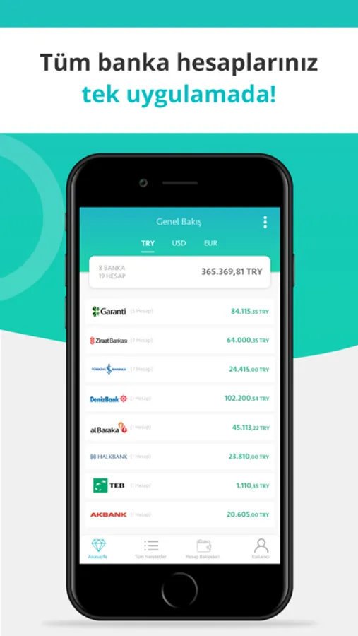 Tüm banka hesaplarını tek tek kontrol etmeye son. Vomsis akıllı banka asistanı sayesinde tüm bankalarınızı tek ekranda görebilir, anlık olarak bakiye ve hesap hareketlerinizi kontrol edebilirsiniz.