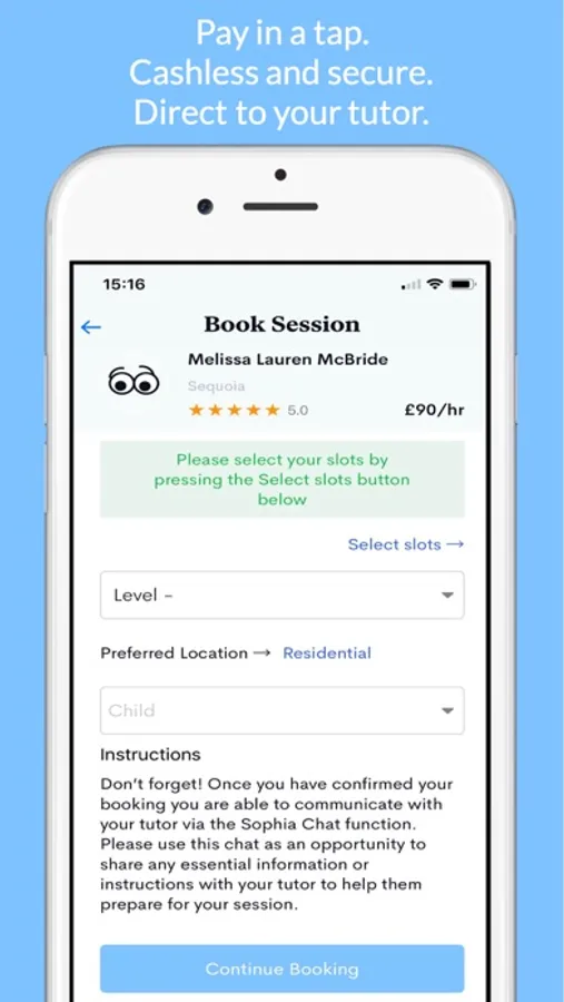 The Sophia on-demand mobile app connects clients with our expert tutors quickly and safely at the touch of a button. Choose your desired level of expertise, select your location and search for your preferred date and time. Payments are cashless and secure via Stripe, at the end of every session.