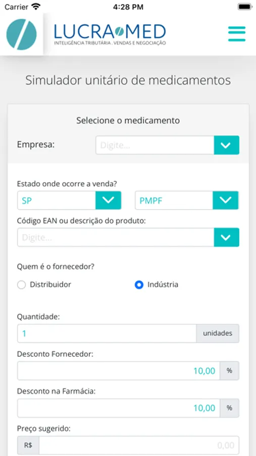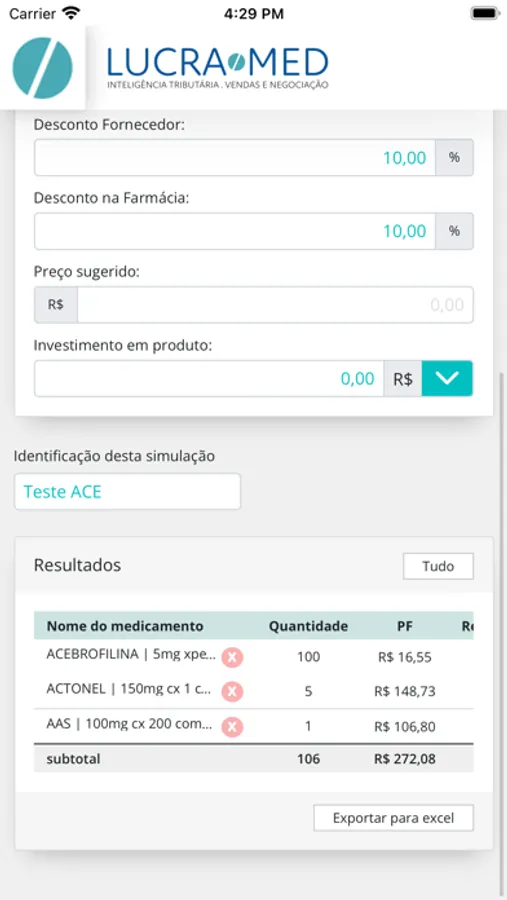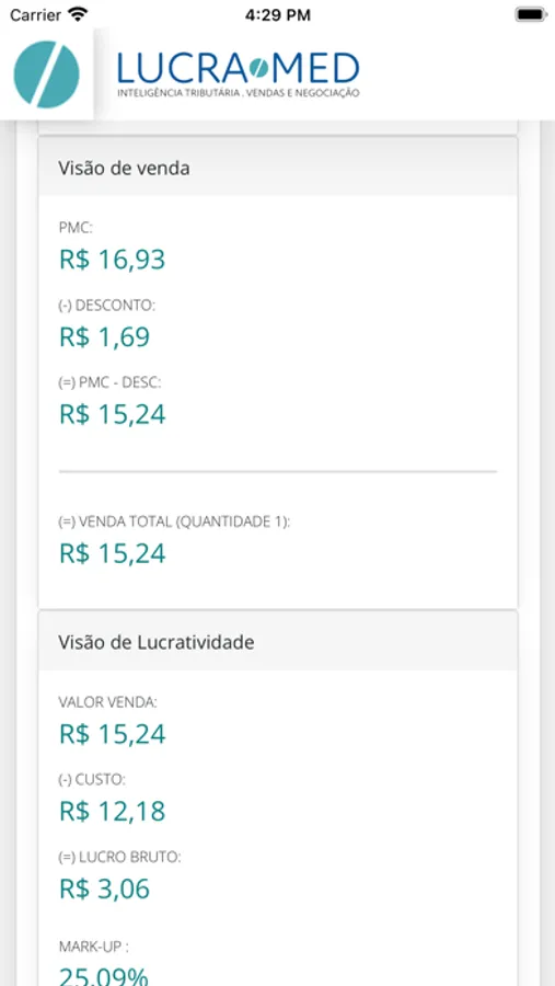 LUCRAMED, o aplicativo que calcula em segundos todos os tributos e lucratividade da cadeira. Você tem em segundos o Valor PF, Repasse, Desconto, Substituição tributária e Custo da farmácia.